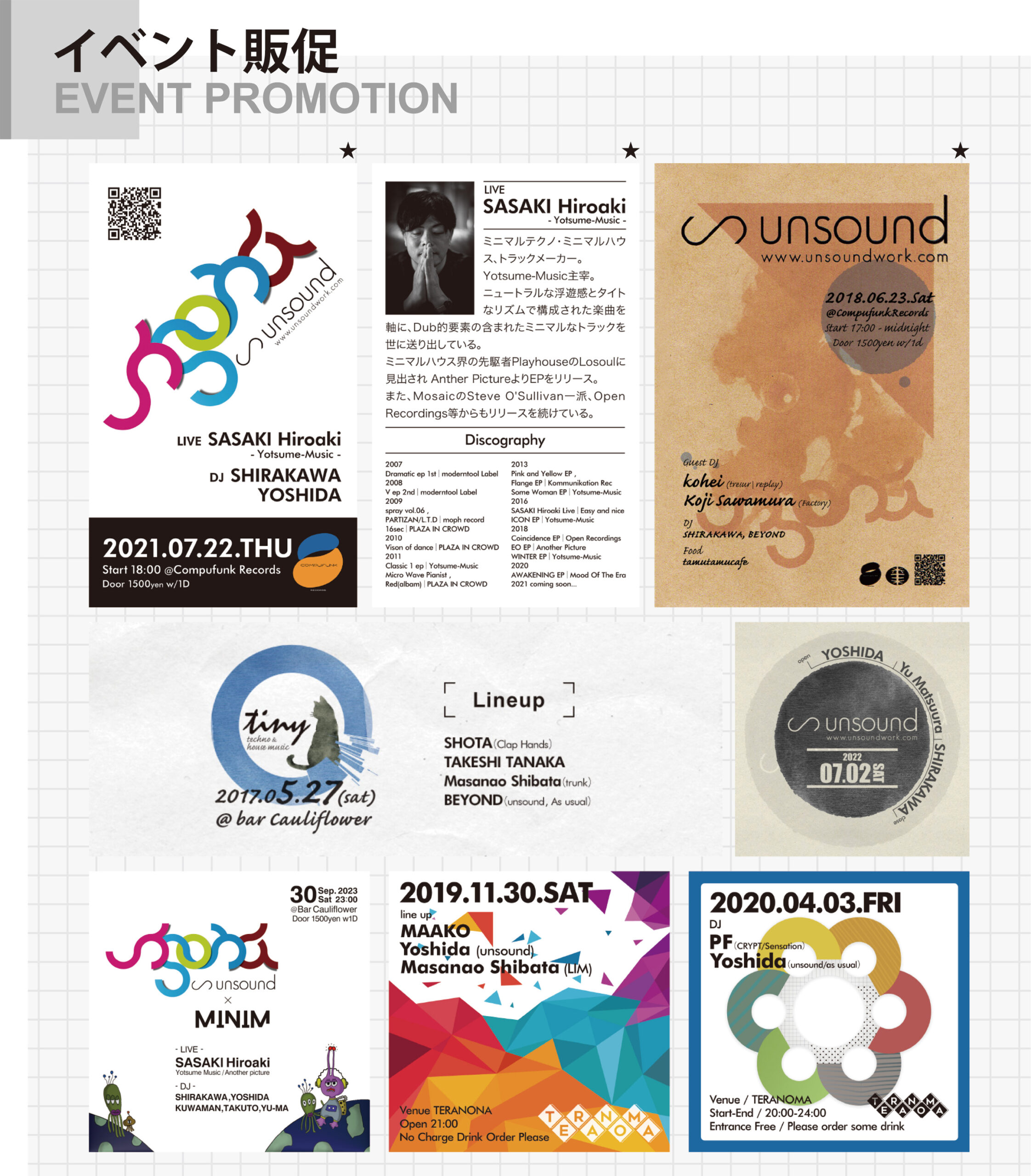 「★マーク」の上部3点は配布用の印刷物として、下部5点はSNS等のWEB用画像の制作。